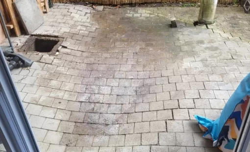 Hydrocan Assainissement est intervenu pour le débouchage d'une canalisation sur une terrasse à Pessac.